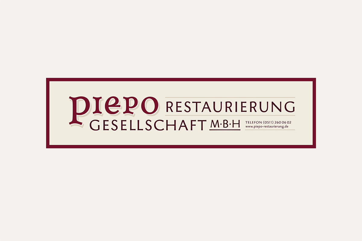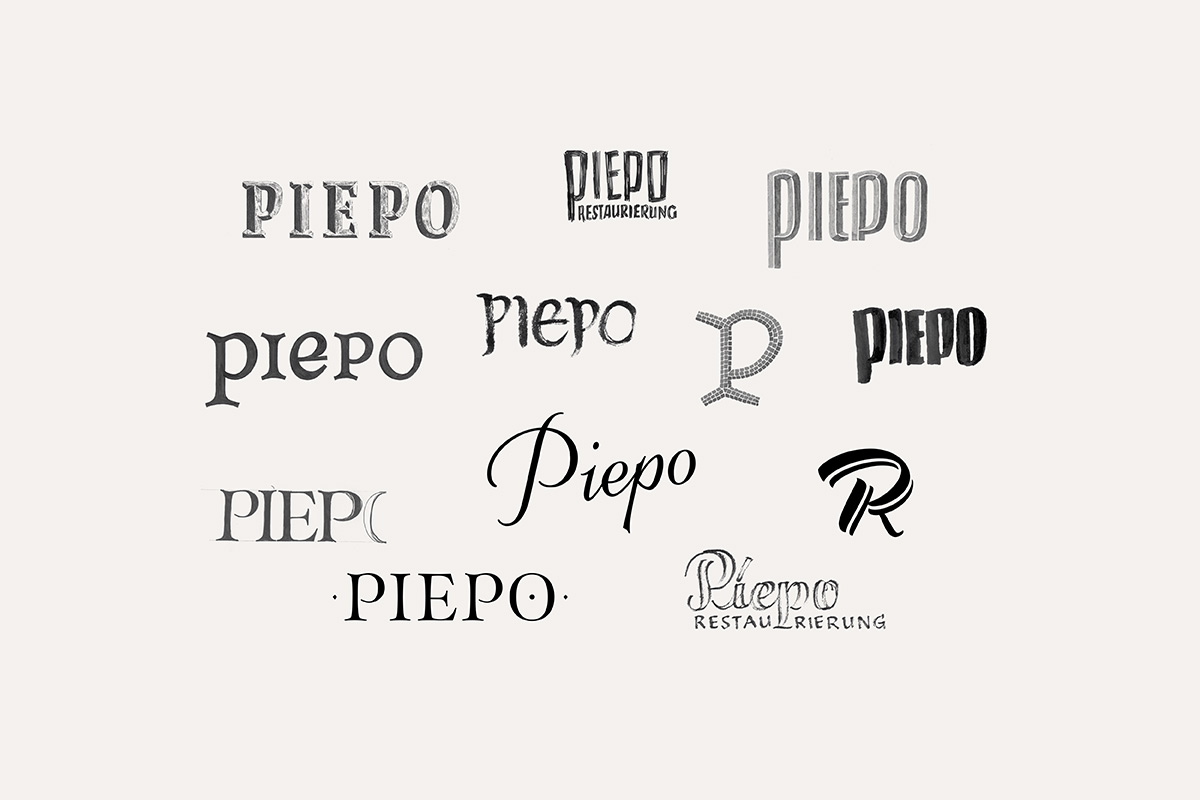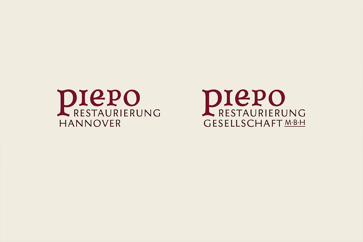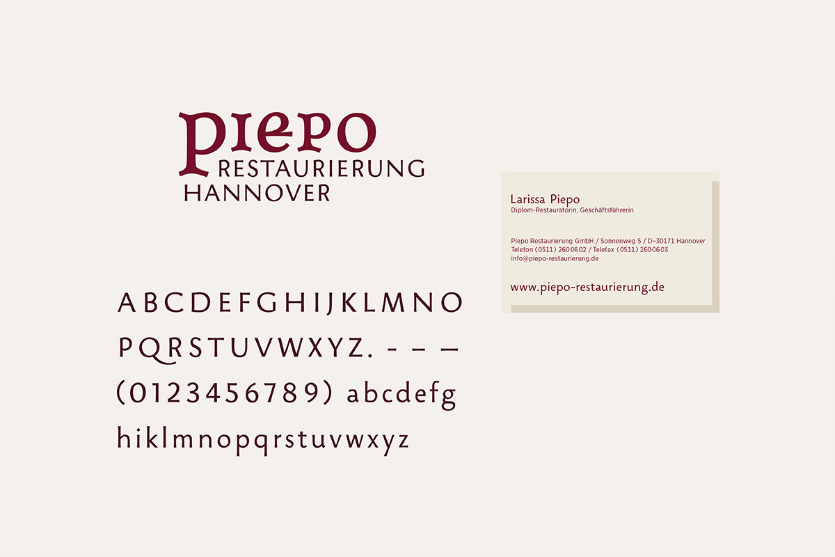 Erscheinungsbild Piepo Restaurierung. Studio LetterinBerlin Albertoni & Grögel, Berlin. Auftraggeber Piepo Restaurierung, Hannover.