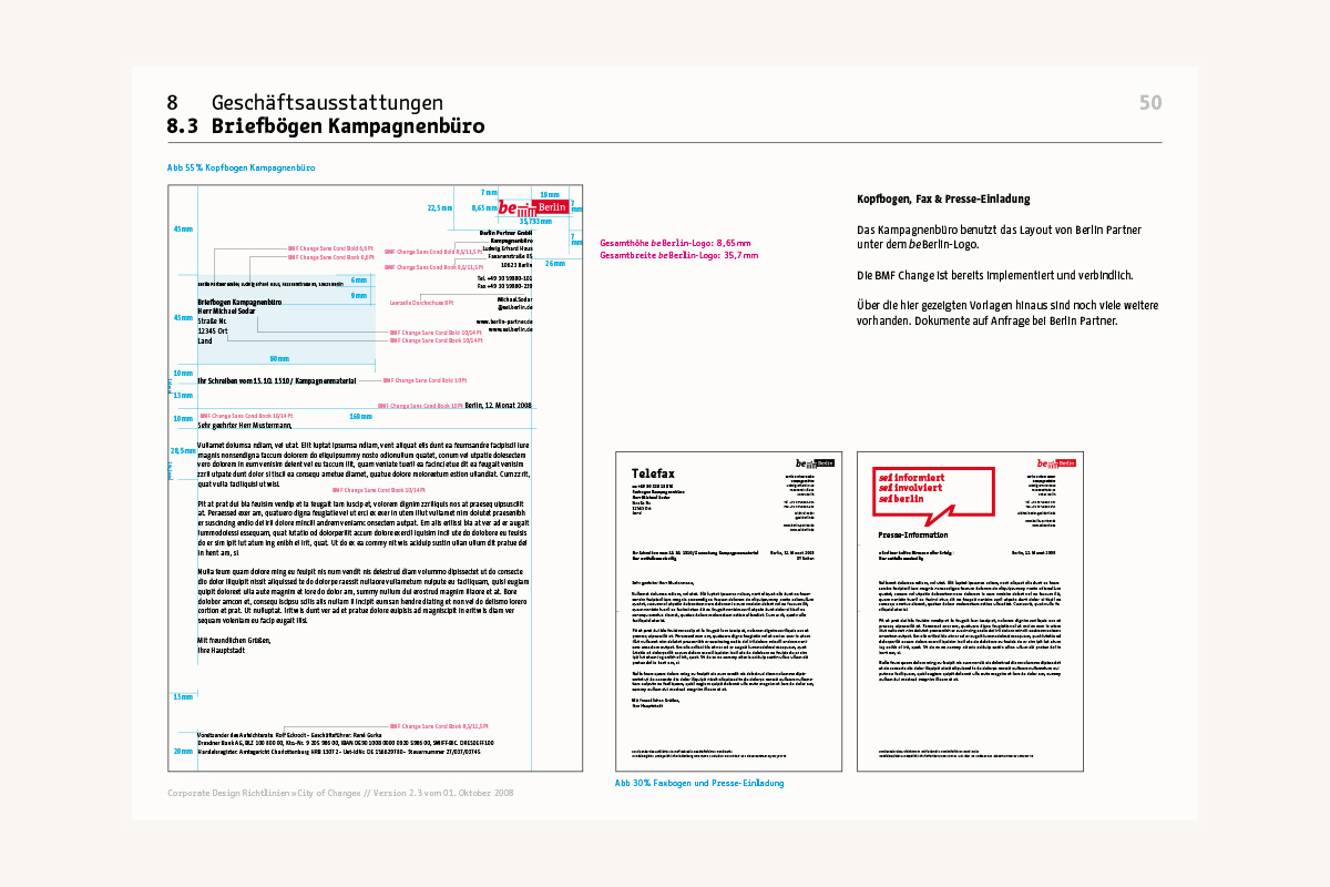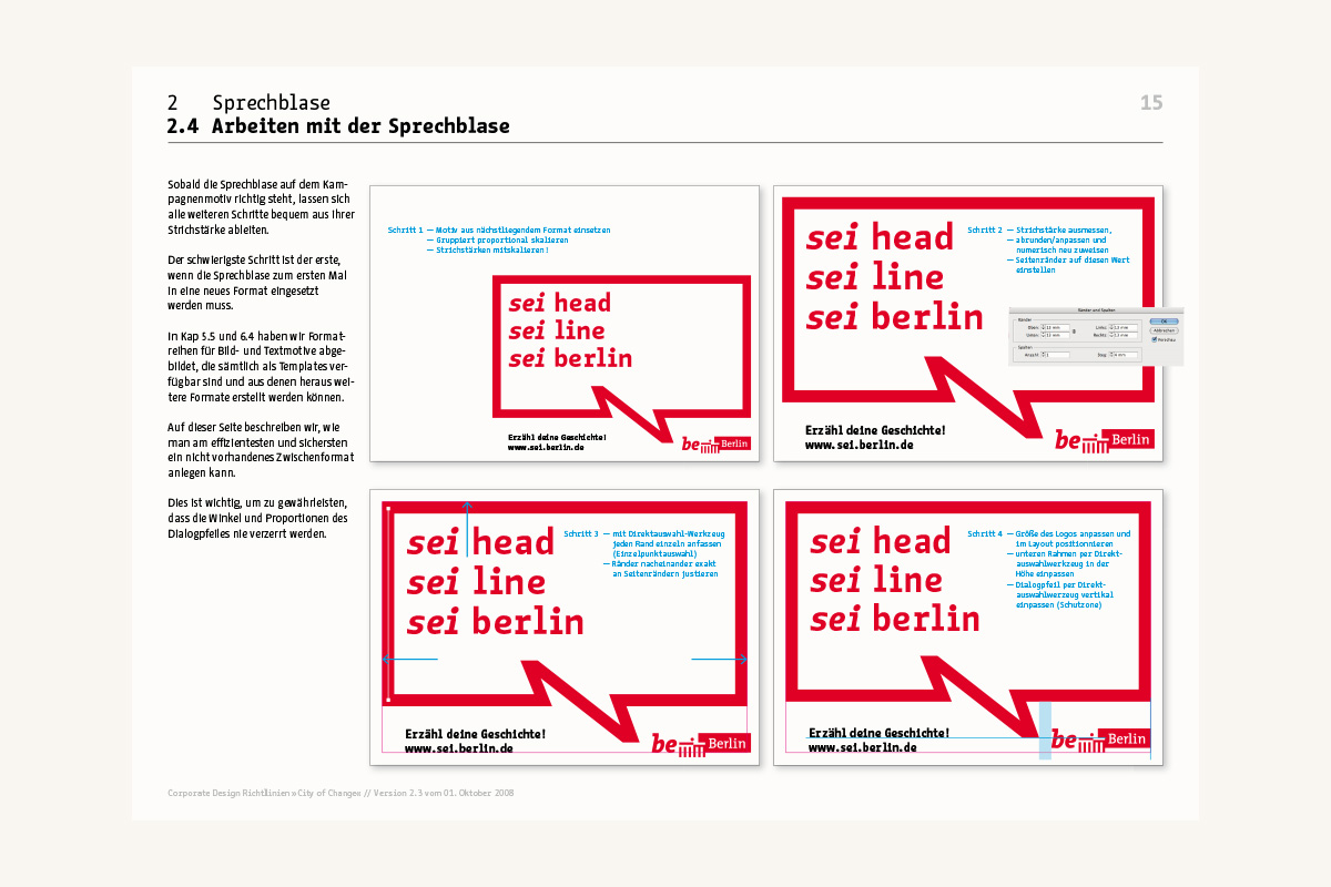 Styleguide beBerlin. Agentur Fuenfwerken Design AG, Berlin. Auftraggeber Senat Berlin, BerlinPartner.