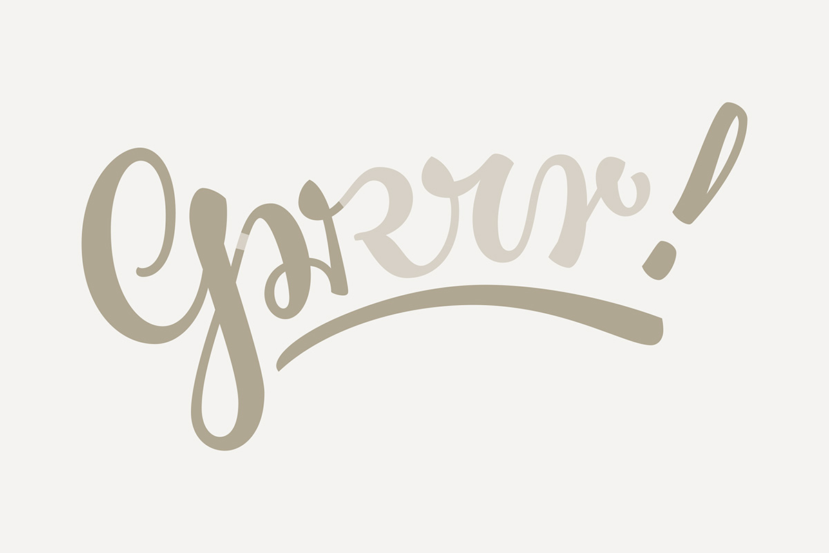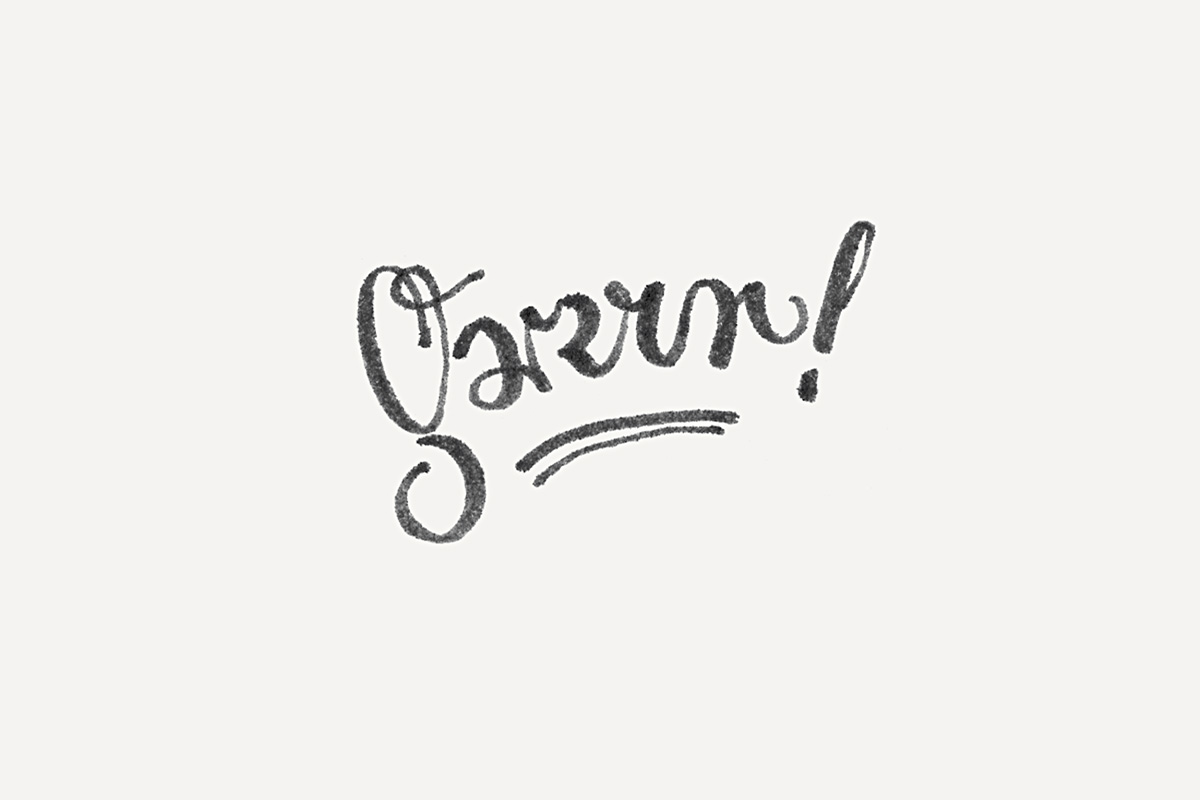Eine einfache Botschaft, kompliziert verpackt. Die Konstruktionen der vier kleinen r, die hier zu sehen sind, stammen aus unterschiedlichen historischen Handschriftmodellen: